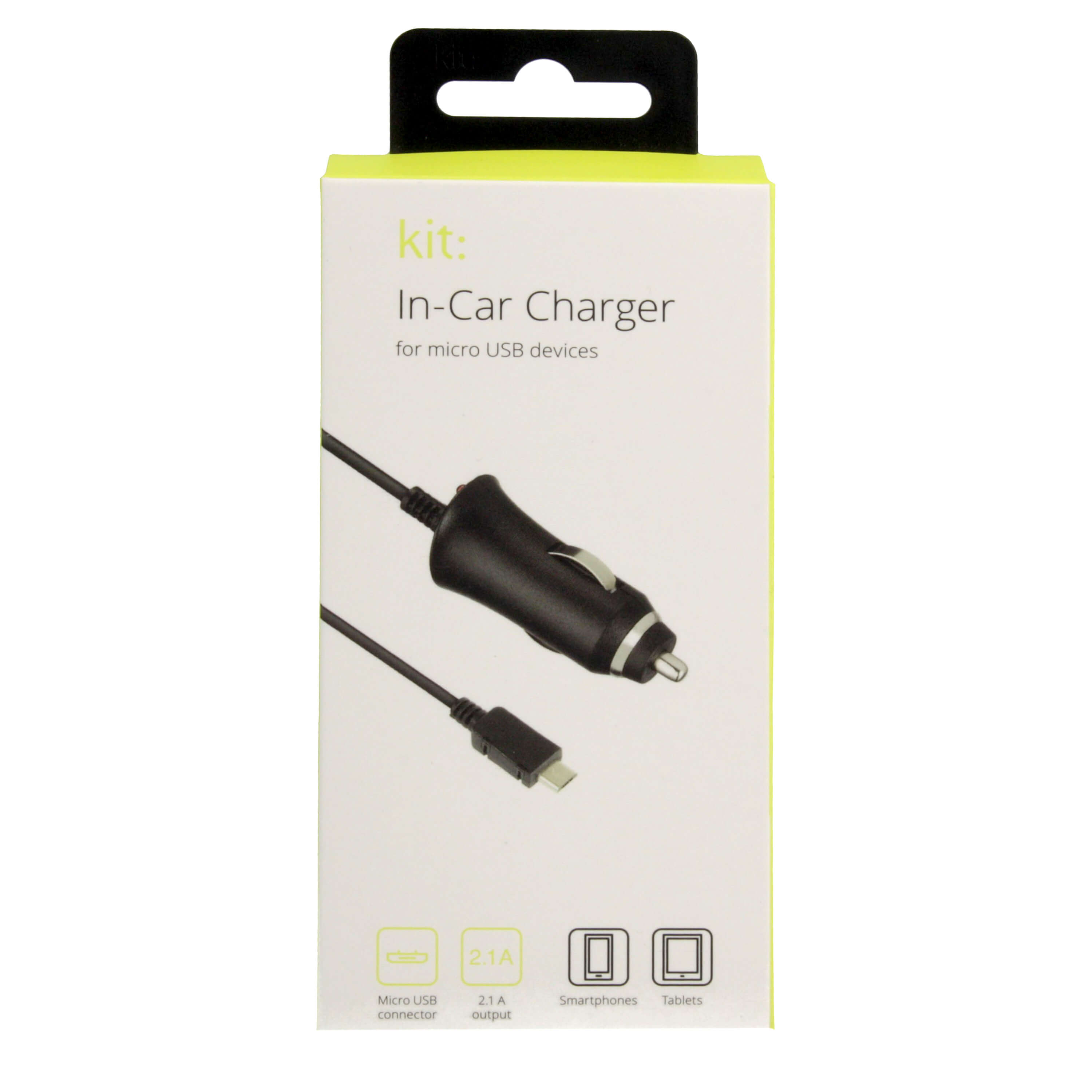Kit MicroUSB Car Charger 2.1A - зарядно за кола с вграден microUSB кабел за мобилни устройства (2.1А)