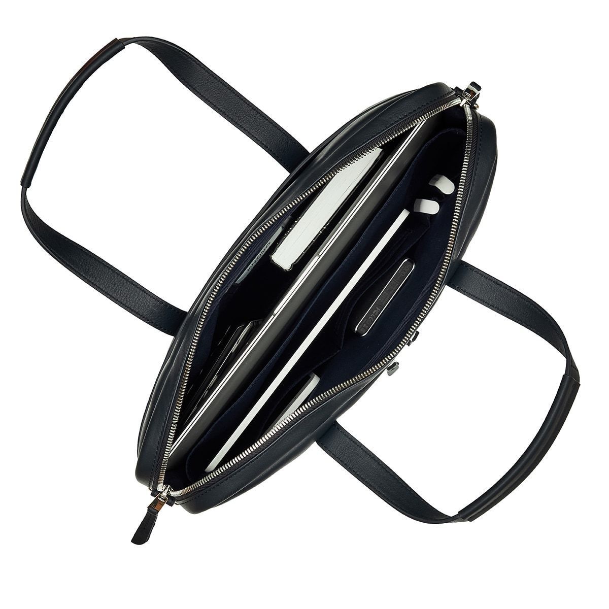 Knomo Hanover Slim Leather Laptop Briefcase 14 - луксозна чанта за MacBook и преносими компютри до 14 инча (тъмносин)