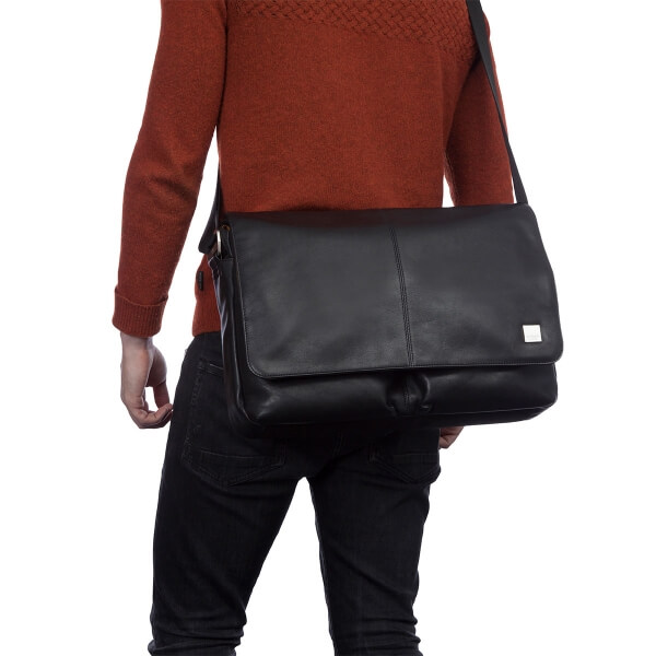 Knomo Kobe Soft Leather Messenger Bag - луксозна кожена чанта за преносими компютри до 15 инча (черен)