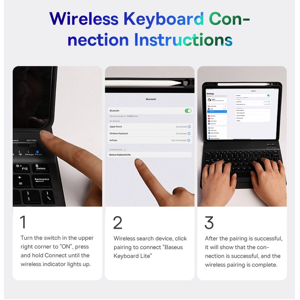 - В комплекта: 1 x Baseus Brilliance Keyboard Case, 1 x блутут клавиатура (черна)