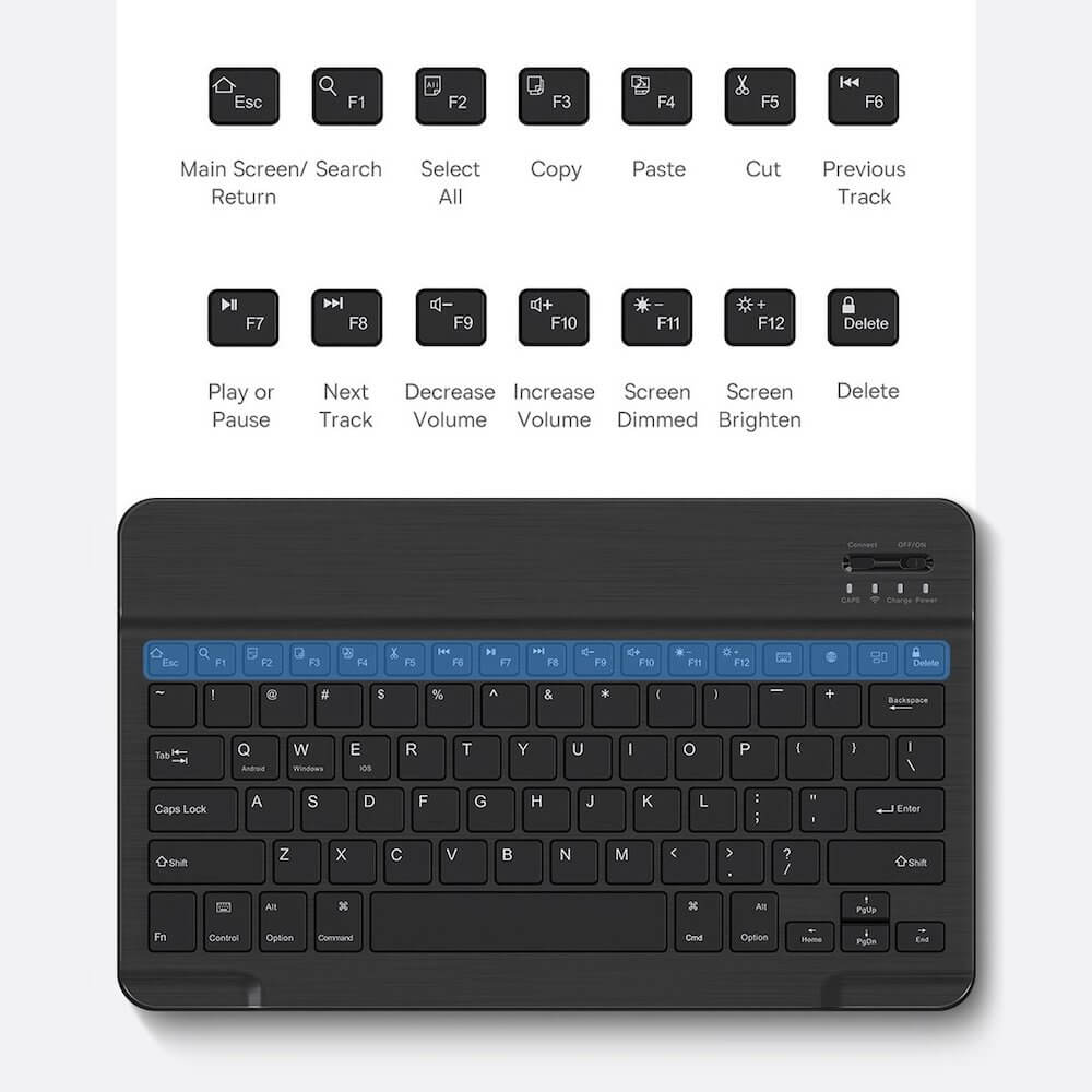 - Клавиатурата може да бъде използвана самостоятелно с всеки един таблет или устройство с Bluetooth - осигурява гъвкавост