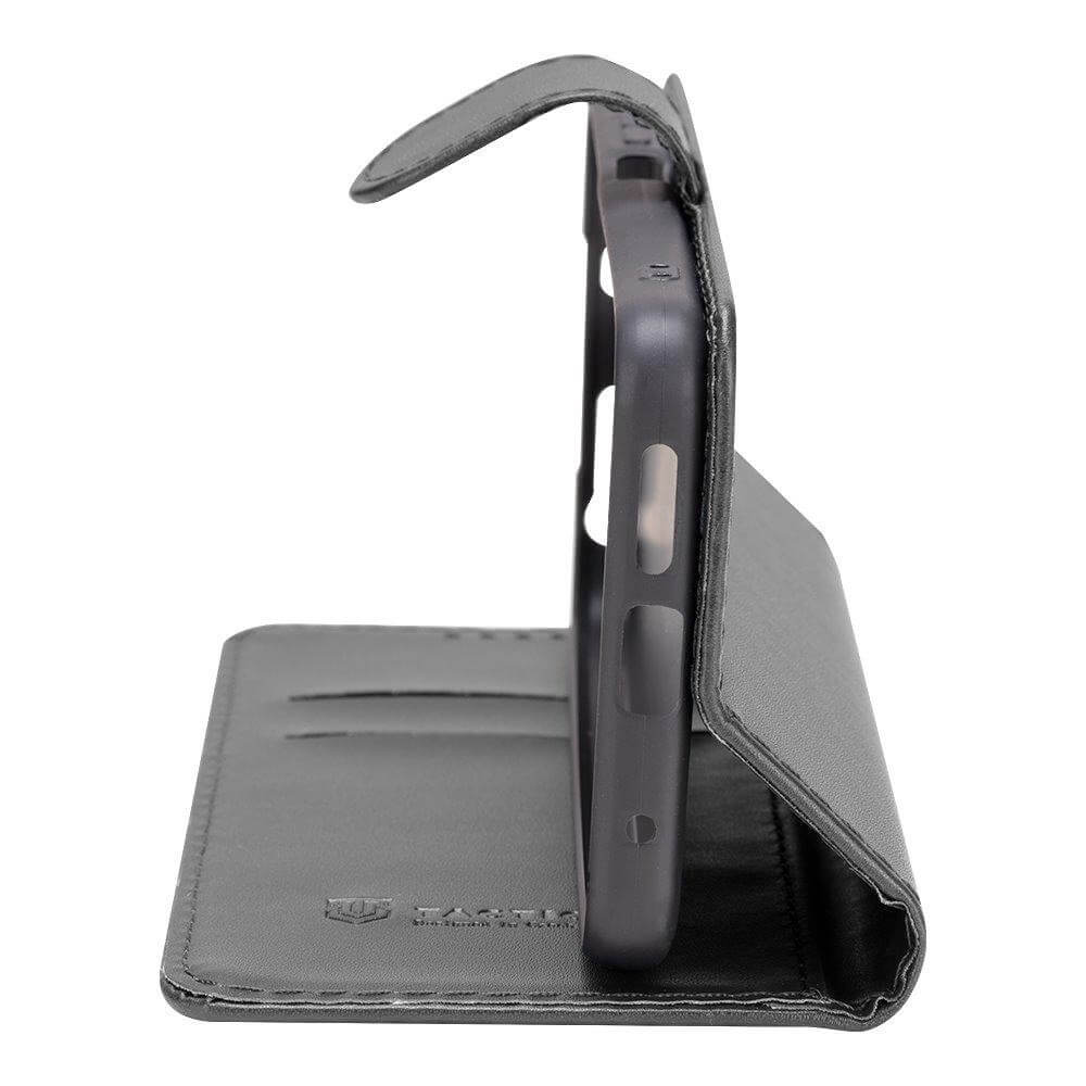 Кожен калъф, тип портфейл с поставка и отделение за кр. карти за Xiaomi Redmi Note 13 Pro - Tactical Xproof Flip Case (черен)