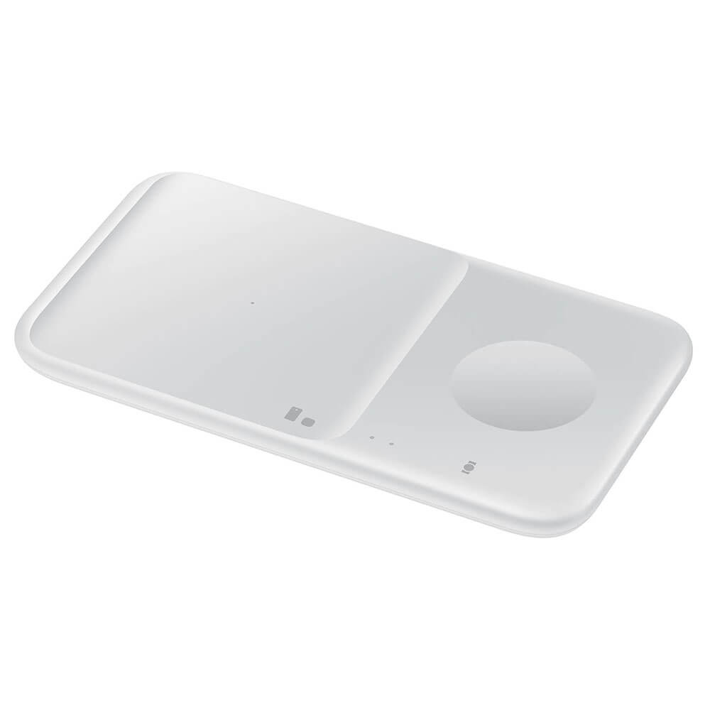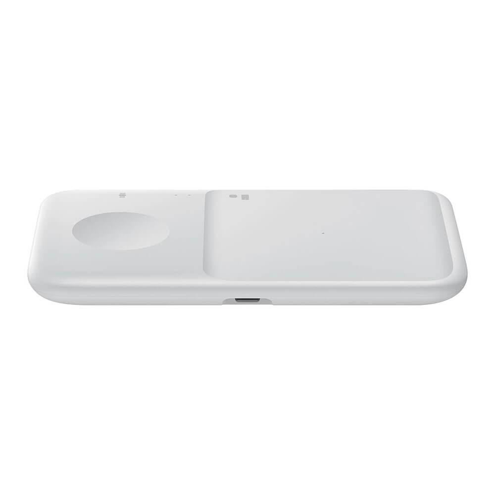 Комплект двойна поставка (пад) за безжично зареждане, зарядно и кабел за мобилни устройства, Galaxy Watch и слушалки - Samsung Wireless Charger Duo EP-P4300TWEGEU (бял)