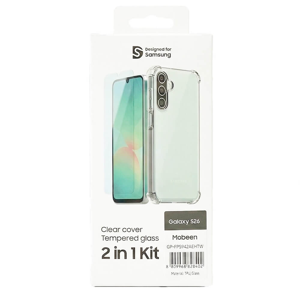 Комплект оригинален TPU кейс и стъклено защитно покритие за дисплея на Samsung Galaxy S26 Ultra - Samsung Mobeen TPU Clear Cover Case And Tempered Glass GP-FPS948AE (прозрачен)