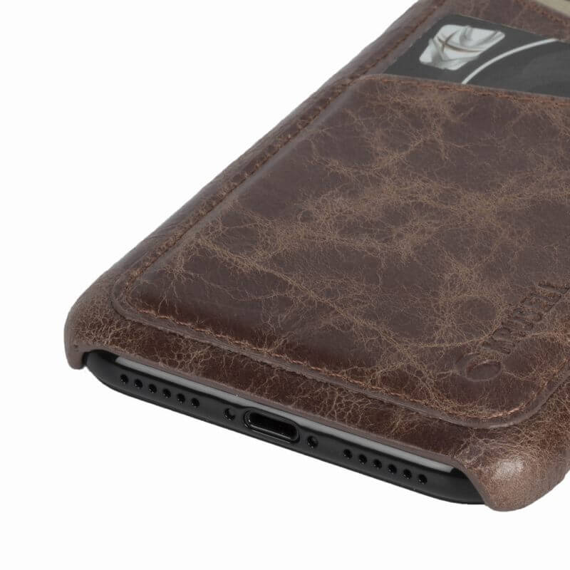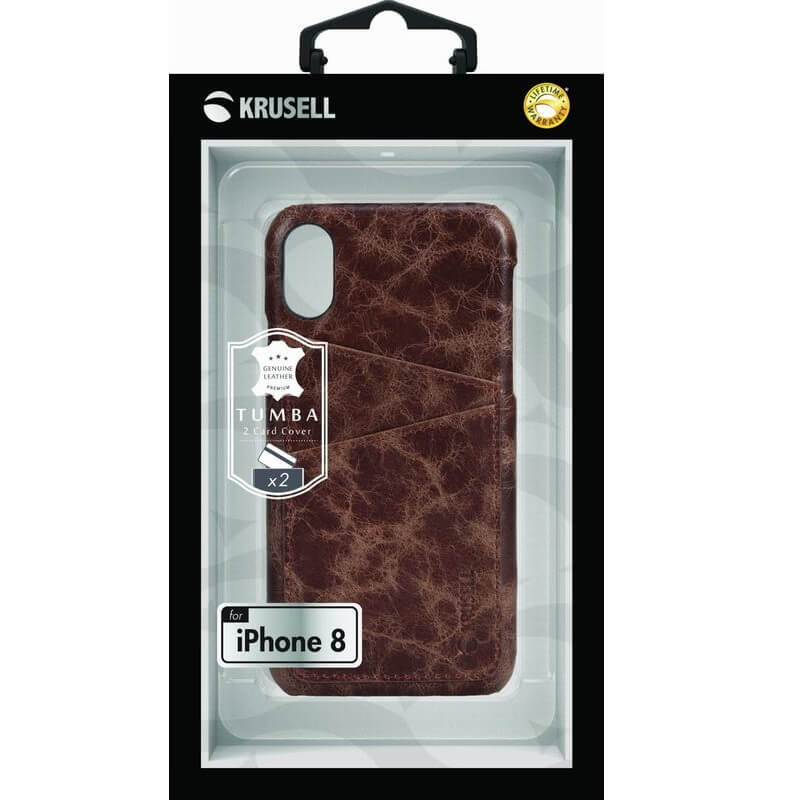Krusell Tumba 2 Card Cover - кожен кейс (ествествена кожа) с 2 отделения за карти за iPhone XS, iPhone X (кафяв)