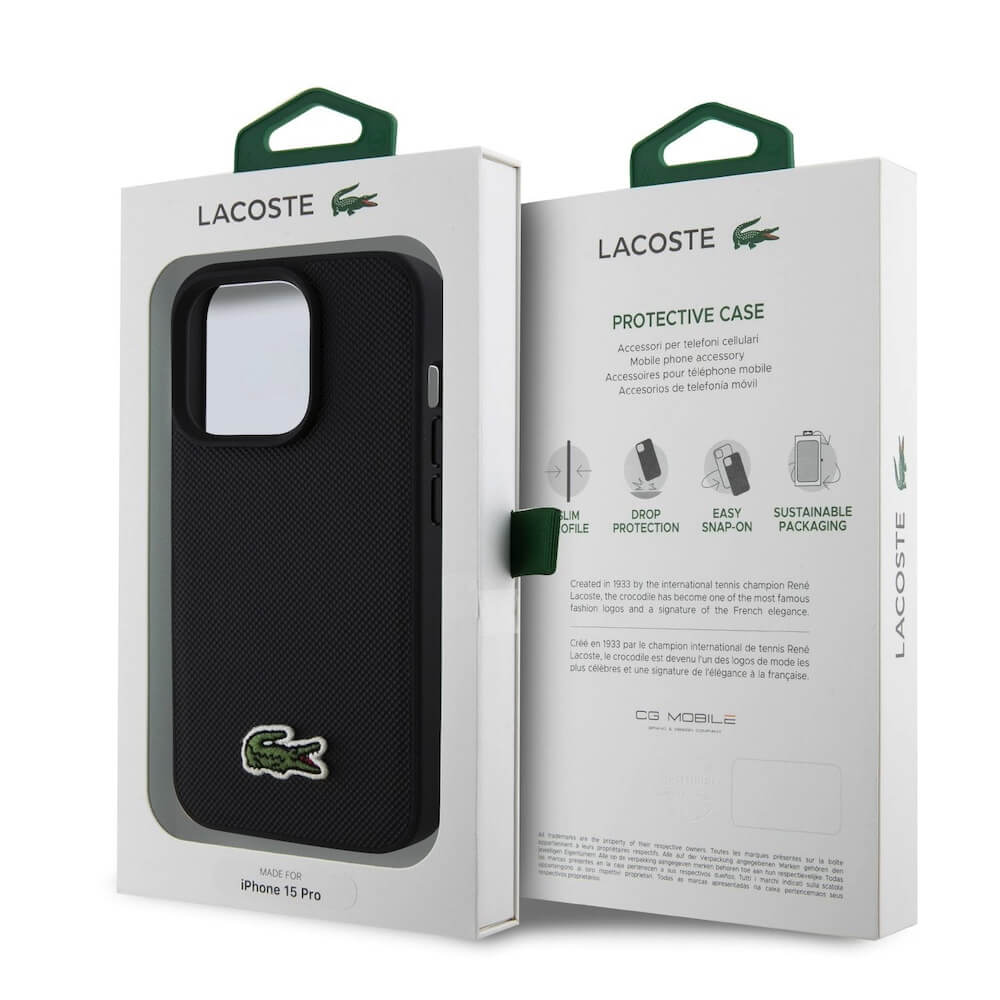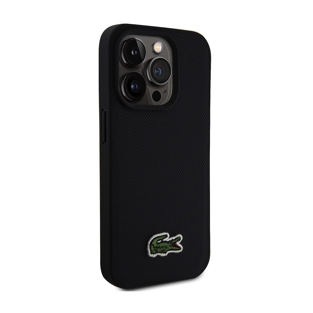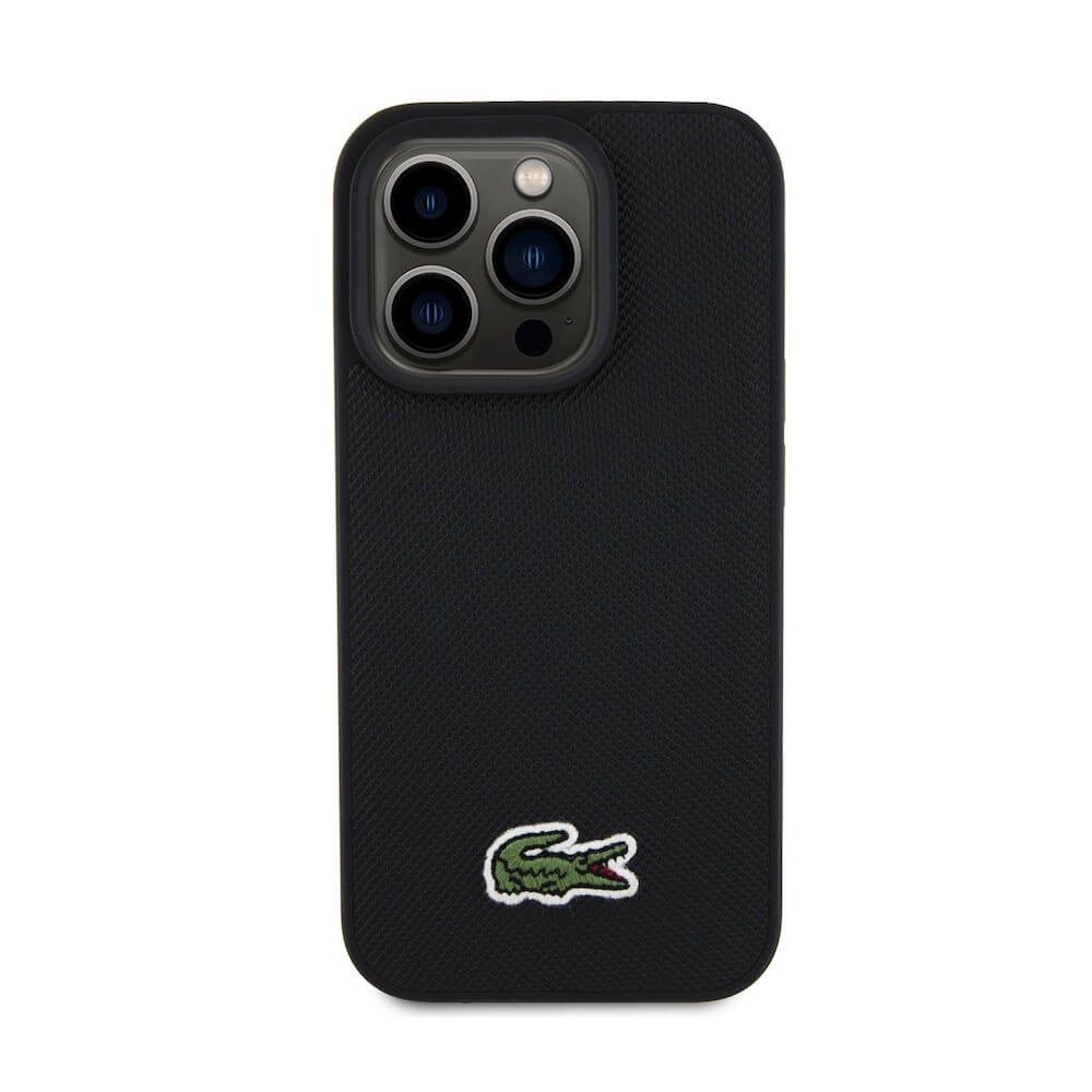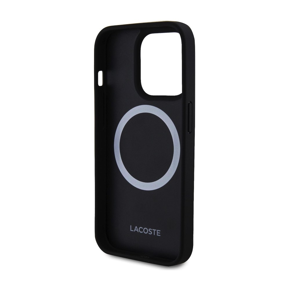Lacoste Iconic Petit Pique Logo MagSafe Case - дизайнерски кожен кейс с MagSafe за iPhone 15 Pro (черен)