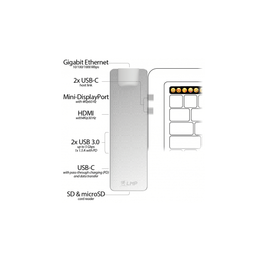 LMP USB-C Compact Dock 4K Pro - мултифункционален хъб за свързване на допълнителна периферия за компютри с USB-C (сребрист)