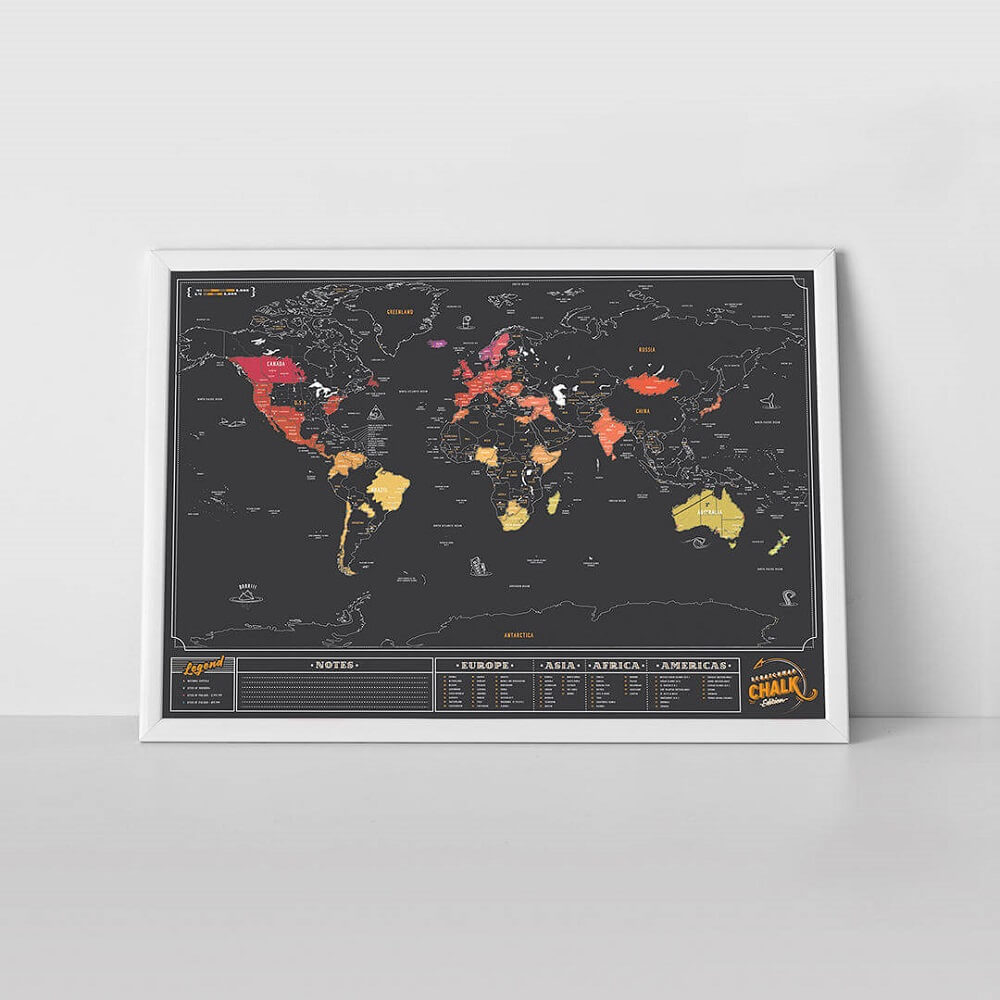 - Скреч картата Chalk Edition е луксозна, стилна карта на света със специално покритие от изтриващо се, скреч фолио. Но защо? За да може да следите всички държави, до които сте пътували и да създадете своя лична, цветна карта на задграничните си пътешествия