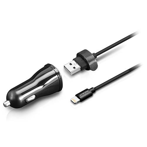 Macally 12W Car Charger - зарядно за кола с USB изход и Lightning кабел за iPhone, iPad и устройства с Lightning порт