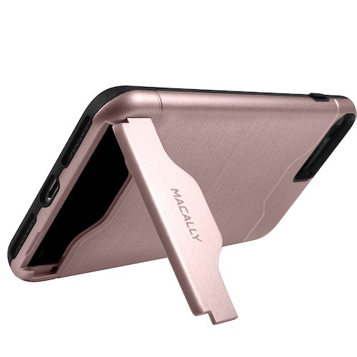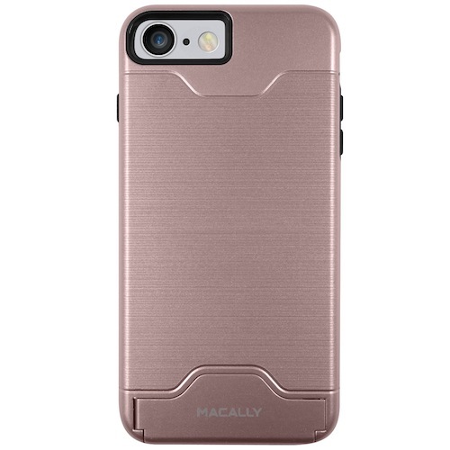Macally KStand Case - хибриден удароустойчив кейс със слот за кр. карта и поставка за iPhone 8, iPhone 7 (розово злато)