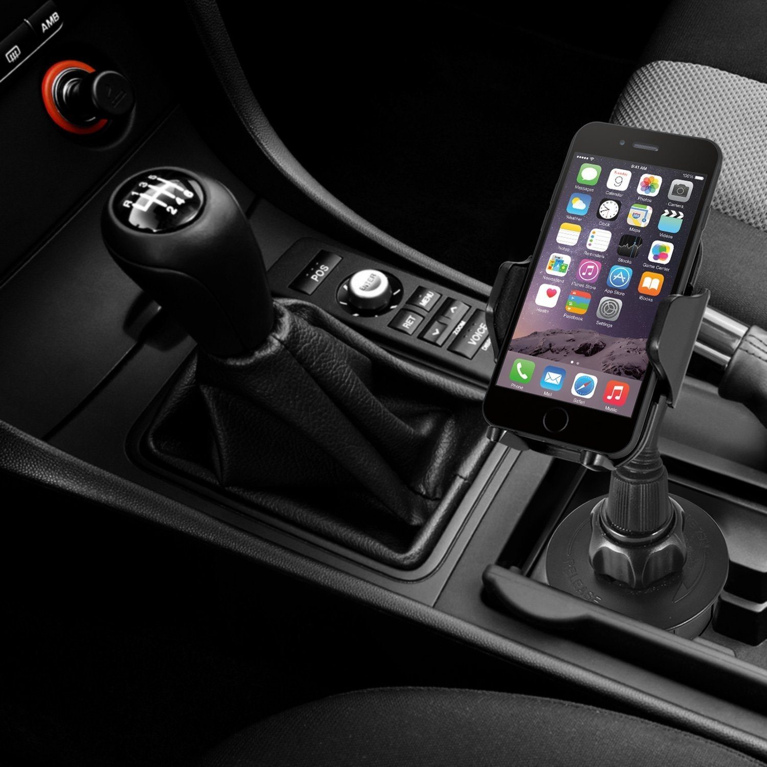 Macally mCup Holder Mount 2XL - универсална поставка за кола за iPhone и мобилни телефони с ширина от 44мм. до 105мм.