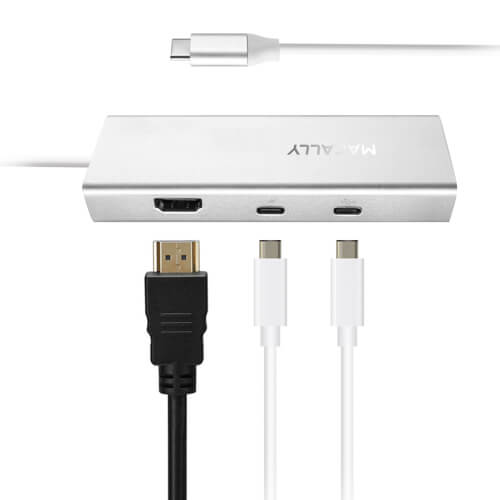 Macally UCDock 4K USB-C Multiport Hub - хъб за свързване от USB-C към HDMI, Ethernet, 2 x USB-C, 2 x USB 3.0 (сребрист)