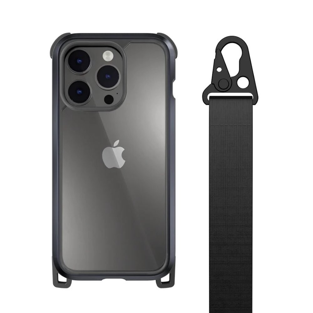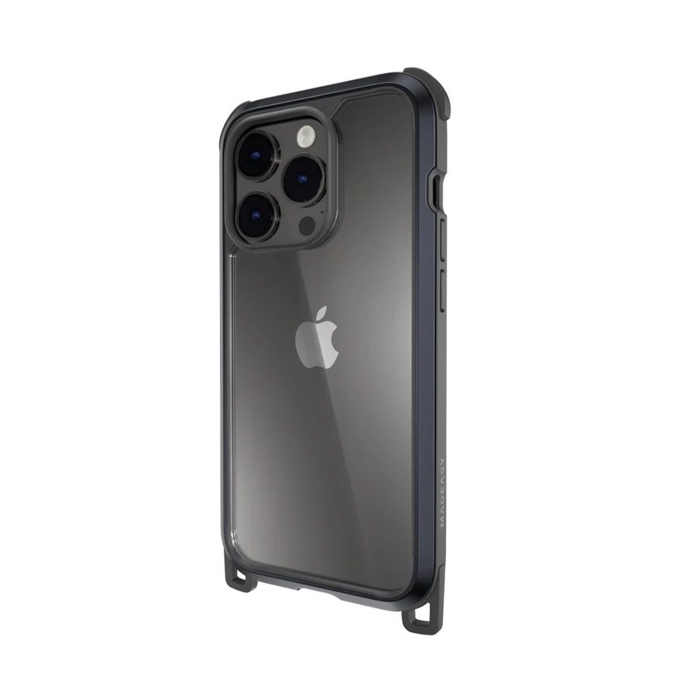 Mageasy Odyssey+ Metal Black Case - удароустойчив хибриден кейс с връзка и карабинер за iPhone 14 Pro (черен)