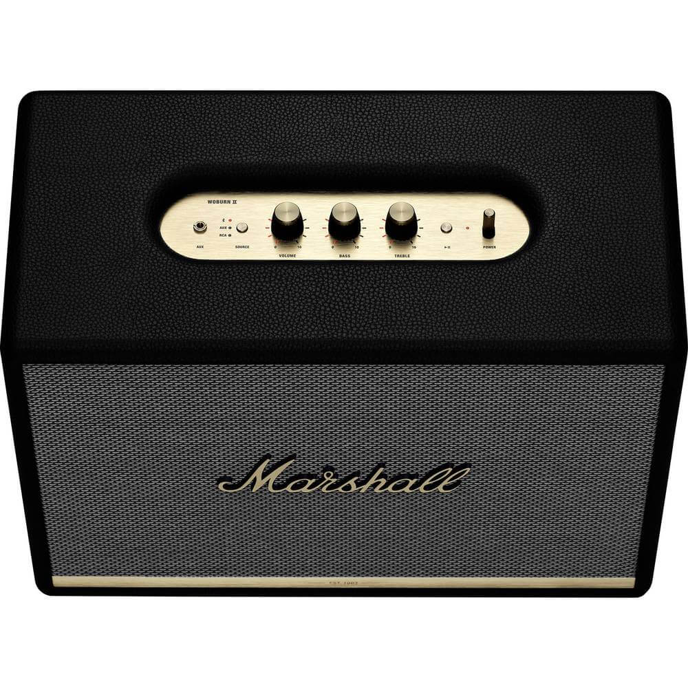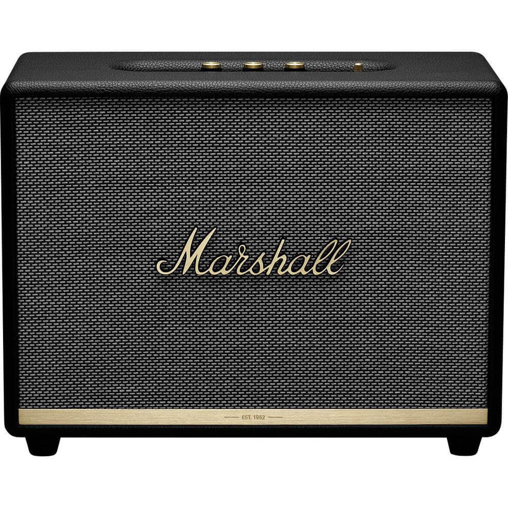- Най-големият високоговорител от Marshall, Woburn II се отличава със силен звук и чисти високи тройни нива, с ниски баси и ясен среден диапазон. С Bluetooth 5.0 технологията и Qualcomm® aptX ™ можете да възпроизвеждате музиката си, без да са необходими никакви кабели