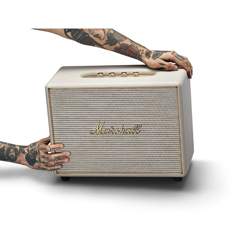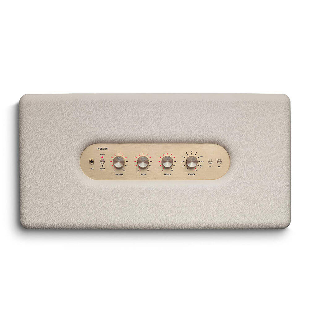 - Най-големият високоговорител от Marshall, Woburn се отличава със силен звук и вид, което го прави идеалния елемент дори за най-големите пространства. Може да го комбинирате с други безжични Marshall Wireless Multi-Room говорители