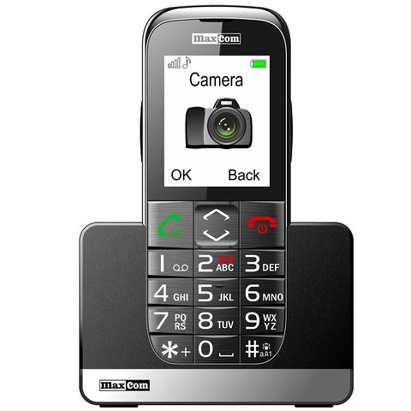 - Удобен и функционален телефон с големи бутони и шрифт, VGA камера, SOS бутон, FM радио и настолно зарядно-стойка