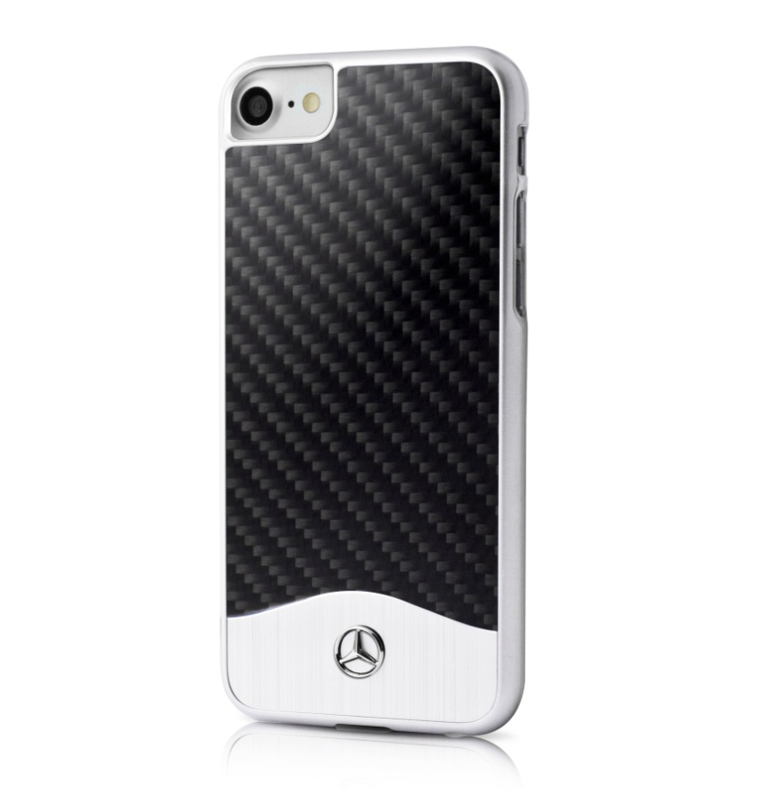 Mercedes-Benz Carbon Fiber Hard Case - дизайнерски карбонов кейс за iPhone 8, iPhone 7 (карбон-сребрист)
