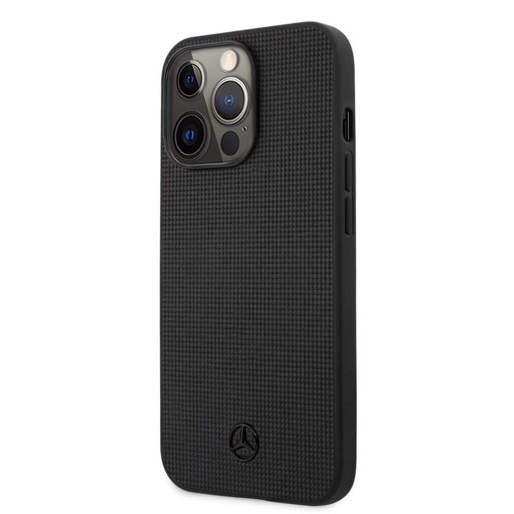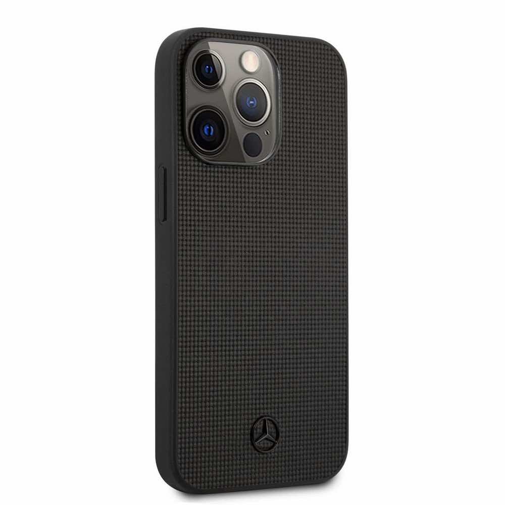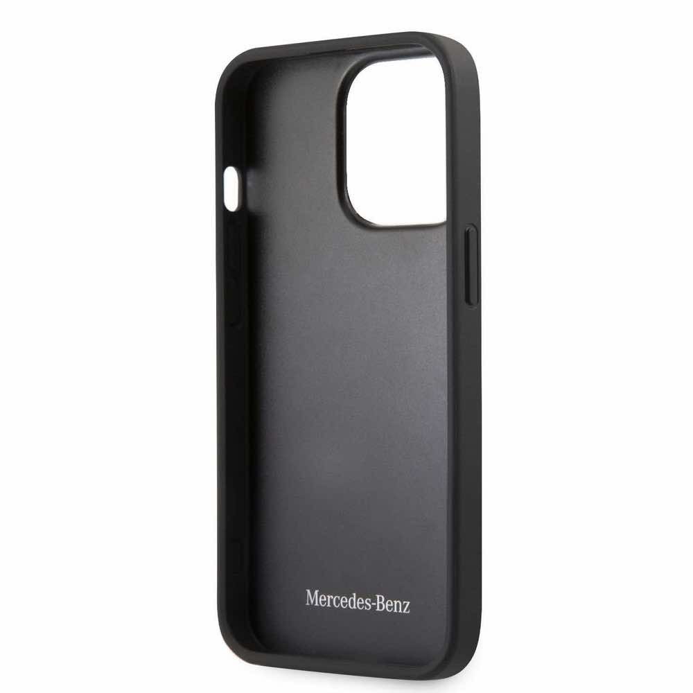 Mercedes-Benz Genuine Leather Meshed Hard Case - дизайнерски кожен кейс (естествена кожа) за iPhone 13 Pro (черен)