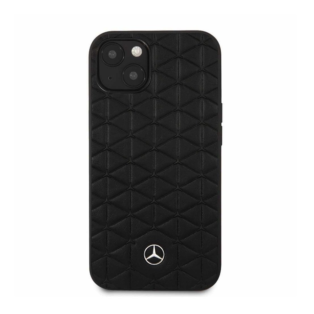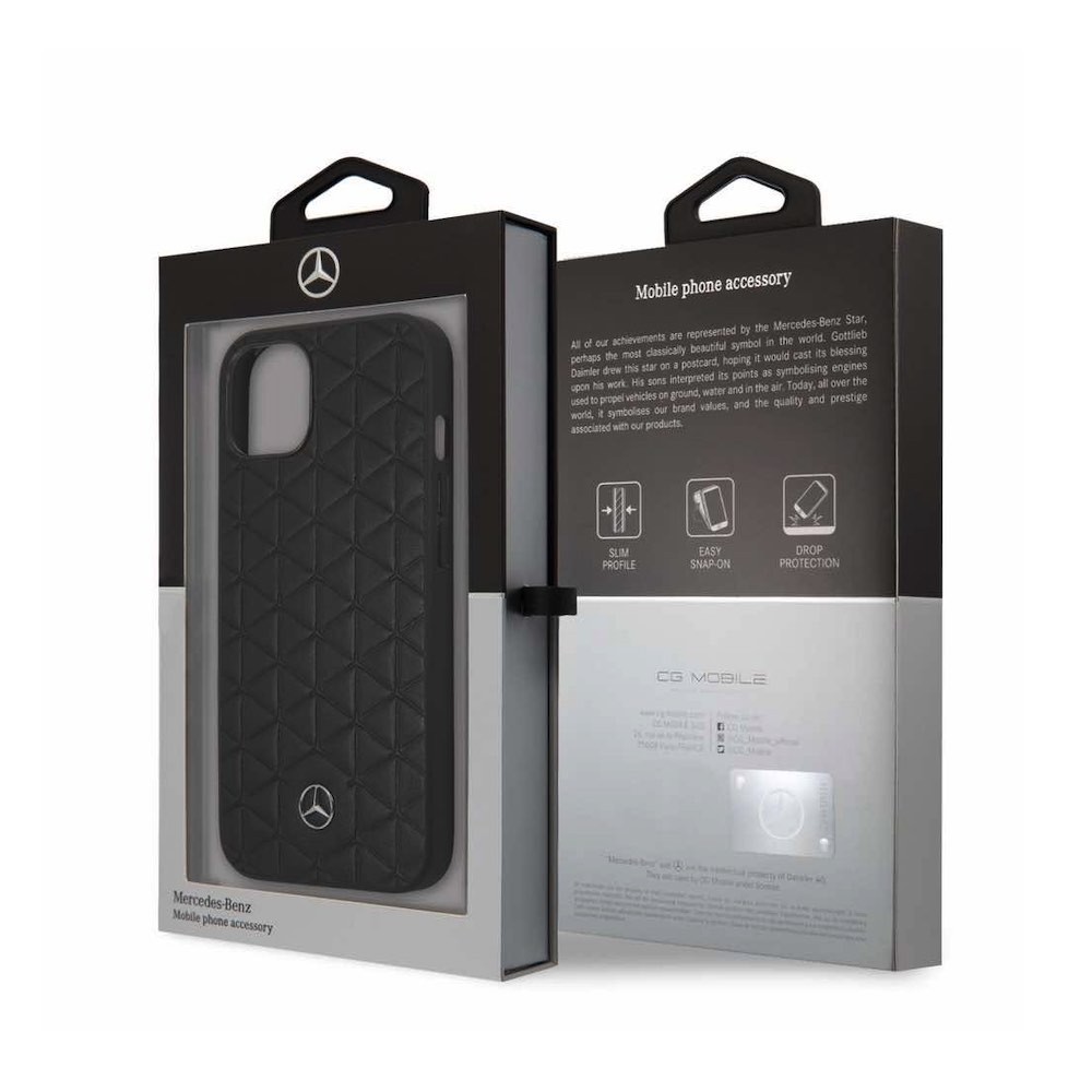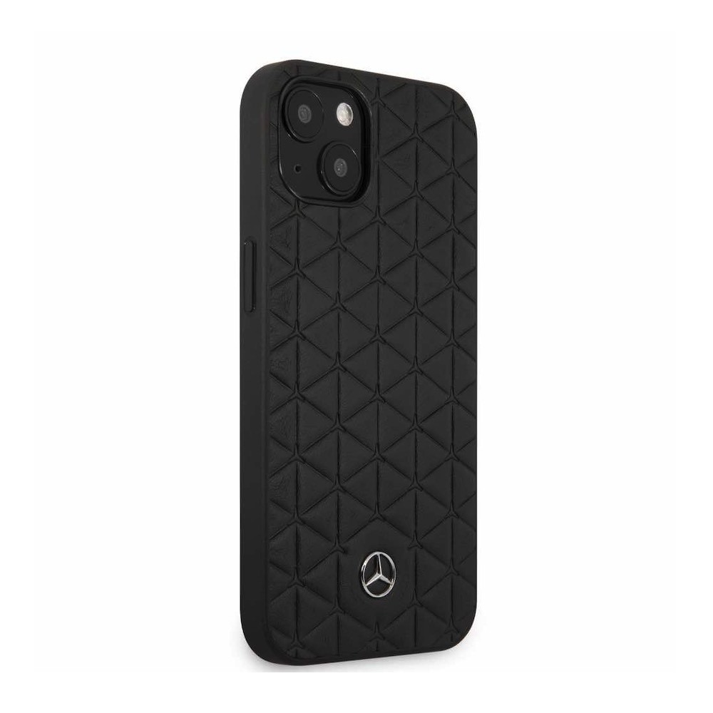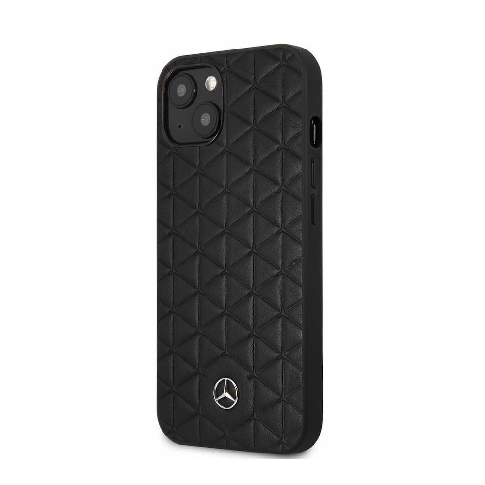 Mercedes-Benz Genuine Leather Quilted Hard Case - дизайнерски кожен кейс (естествена кожа) за iPhone 13 mini (черен)