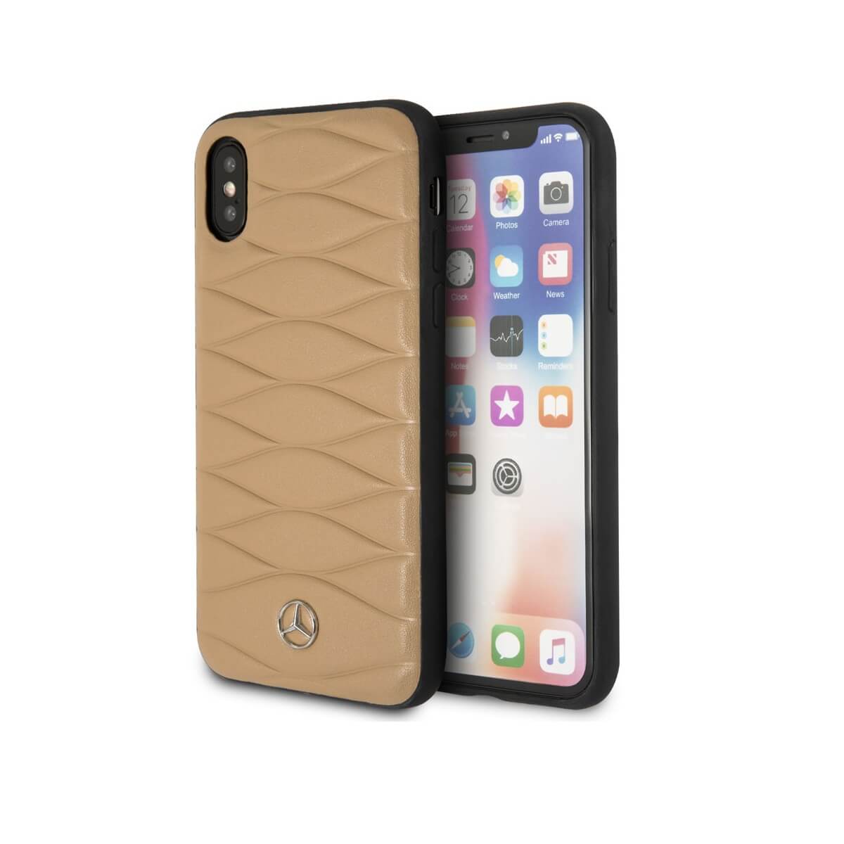 Mercedes-Benz Pattern III Leather Hard Case - кожен кейс (естествена кожа) за iPhone XS, iPhone X (кафяв)