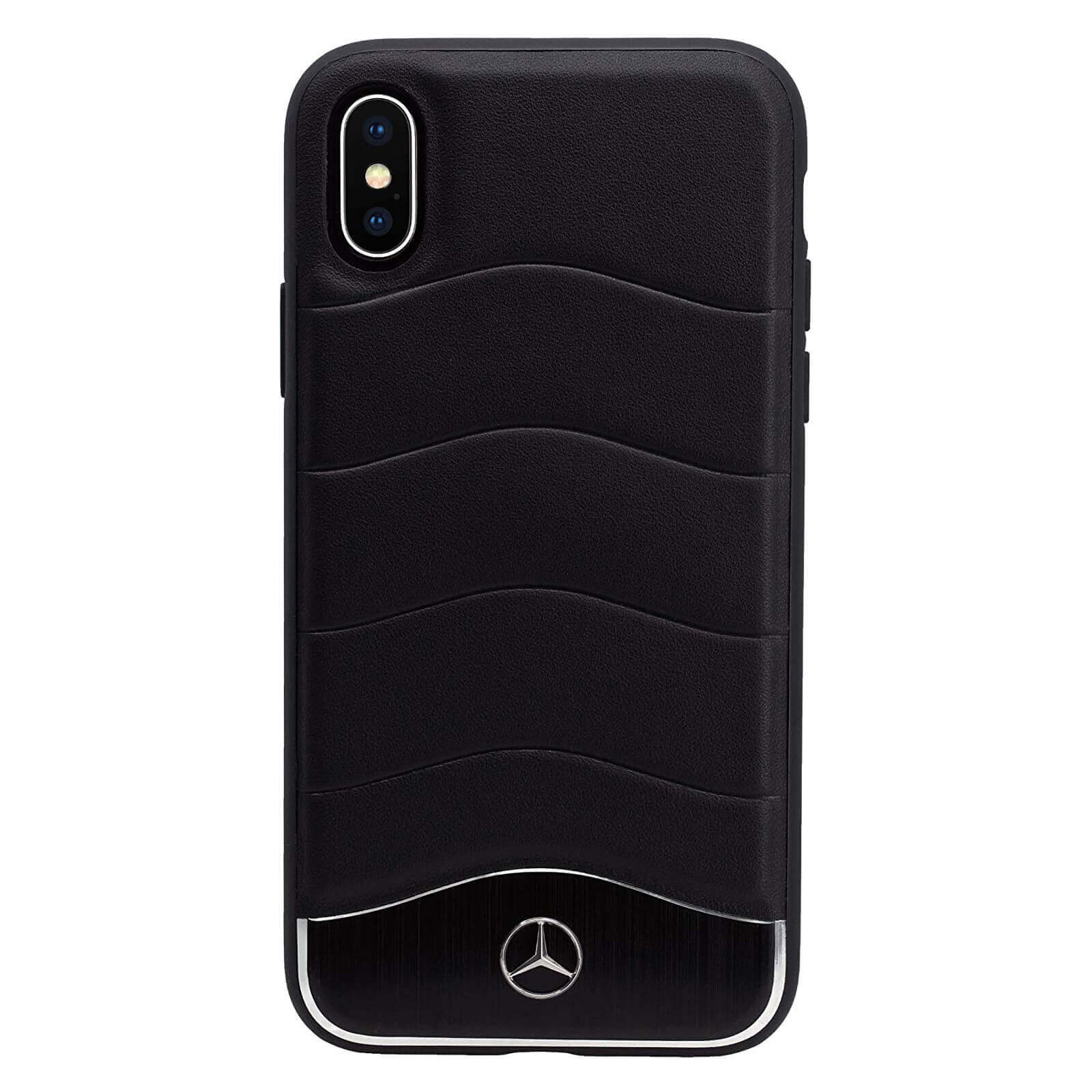 Mercedes-Benz Wave III Genuine Leather Hard Case - дизайнерски кожен кейс за iPhone XS, iPhone X (черен-сребрист)