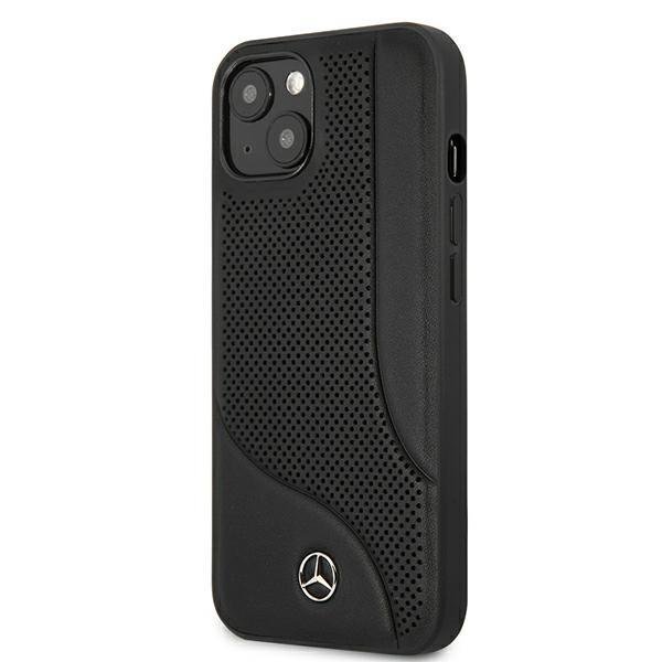 Mercedes Perforated Area Genuine Leather Hard Case - дизайнерски кожен кейс (естествена кожа) за iPhone 13 (черен)