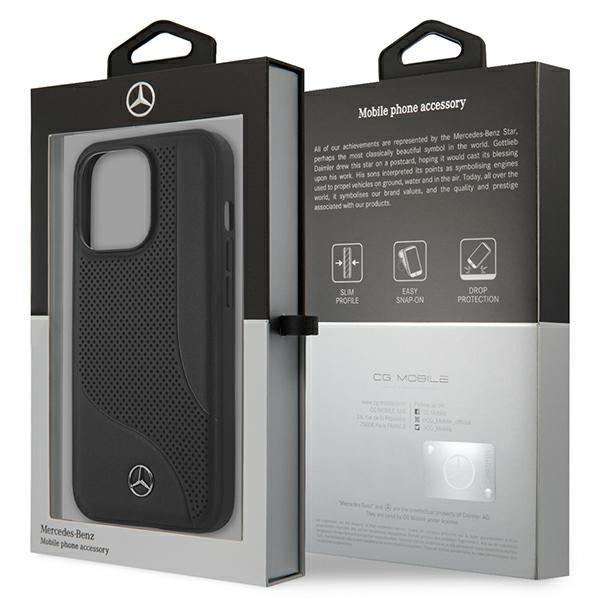 Mercedes Perforated Area Genuine Leather Hard Case - дизайнерски кожен кейс (естествена кожа) за iPhone 13 Pro (черен)