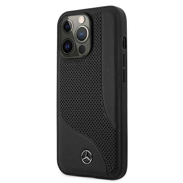 Mercedes Perforated Area Genuine Leather Hard Case - дизайнерски кожен кейс (естествена кожа) за iPhone 13 Pro Max (черен)