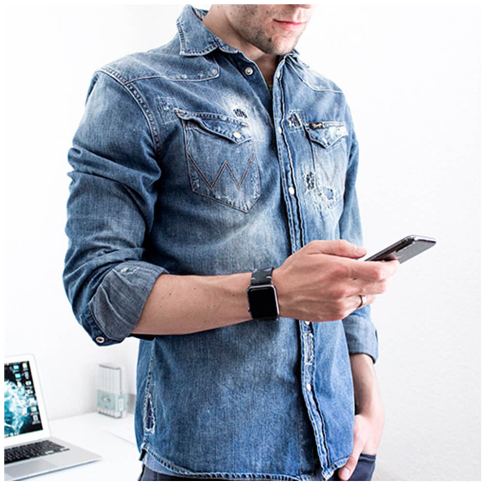 - Някои от снимките на продукта са с различен цвят на елементите за прикрепяне към Apple Watch. Обърнете внимание, че тази каишка е с ТЪМНОСИВИ закрепващи елементи.