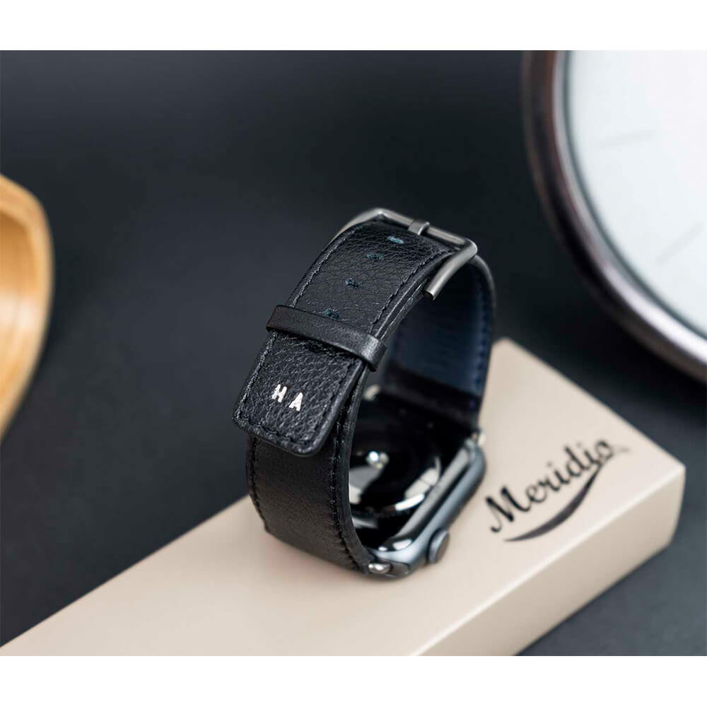 - Някои от снимките на продукта са с различен цвят на елементите за прикрепяне към Apple Watch. Обърнете внимание, че тази каишка е с ЧЕРНИ закрепващи елементи.