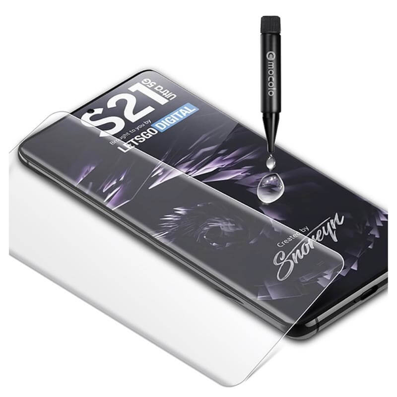 Mocolo 3D UV Full Glue Tempered Glass - стъклено защитно покритие с течно лепило и UV лампа за дисплея на Samsung Galaxy S21 Plus (прозрачен)
