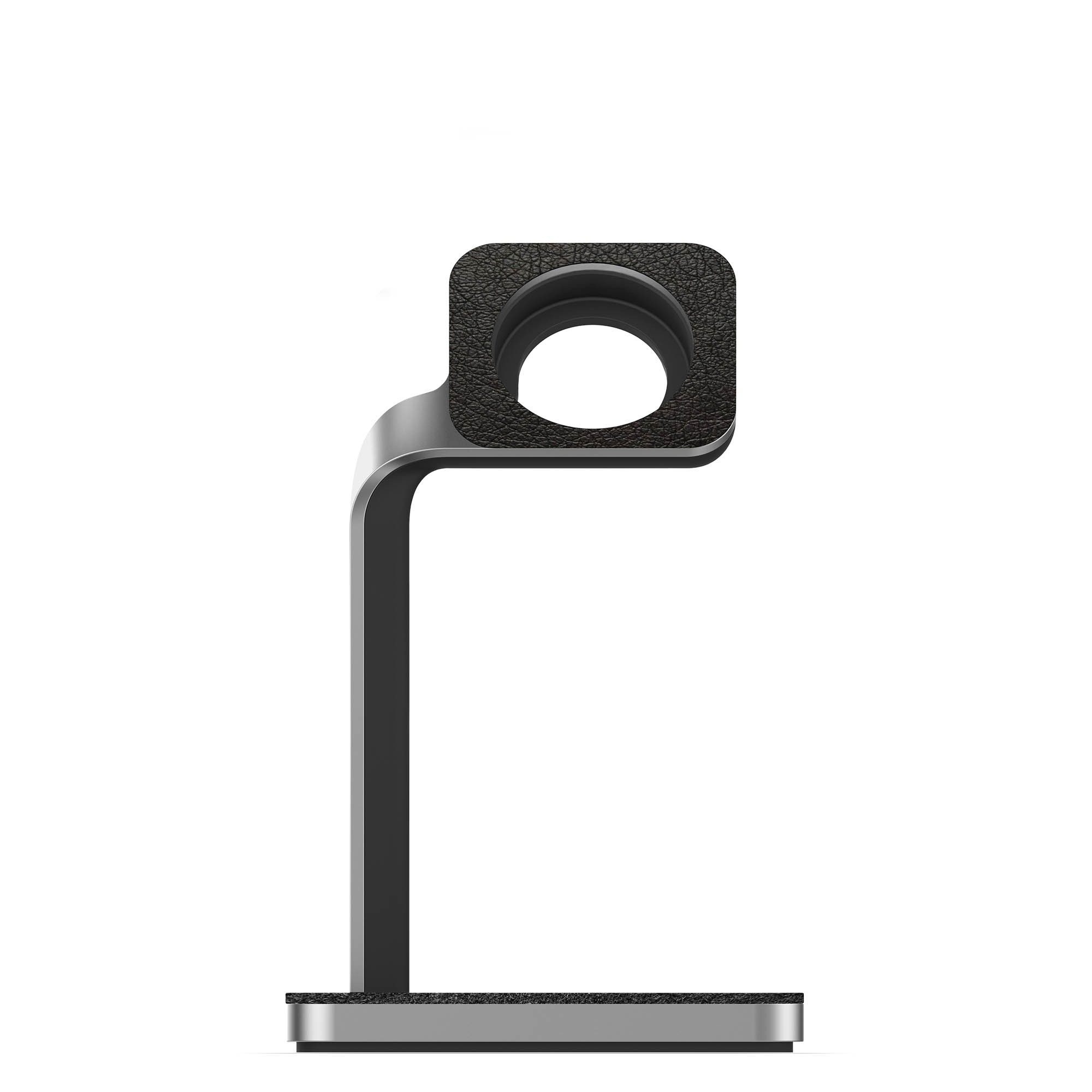 • Елегантна и луксозна алуминиева поставка с елементи от естествена кожа за Apple Watch