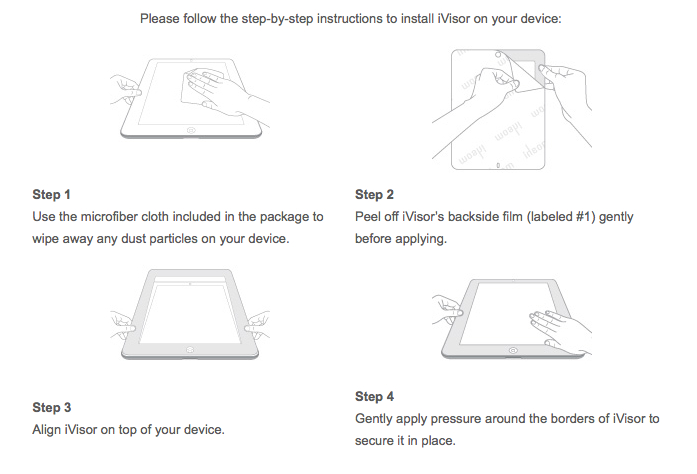 • Внимание: може да забележите т.н. ефект на дъгата над фолиото когато вашия iPad е със загасен екран или когато се гледа под определен ъгъл. Това е просто естествен оптичен феномен и по никакъв начин не пречи на работата ви с таблета.