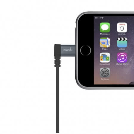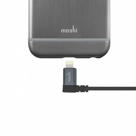 Moshi Lightning to USB Cable 90 degrees - Lightning кабел за iPhone, iPad, iPod и всички устройства с Lightning конектор (150 см) (черен)