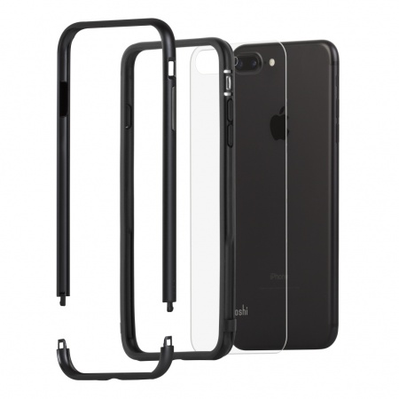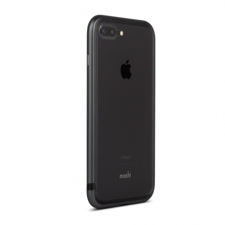 Moshi Luxe Bumper Case - метален бъмпер и покритие за задната част за iPhone 8 Plus, iPhone 7 Plus (тъмносив)