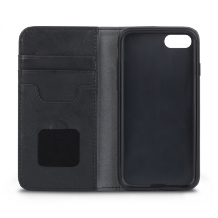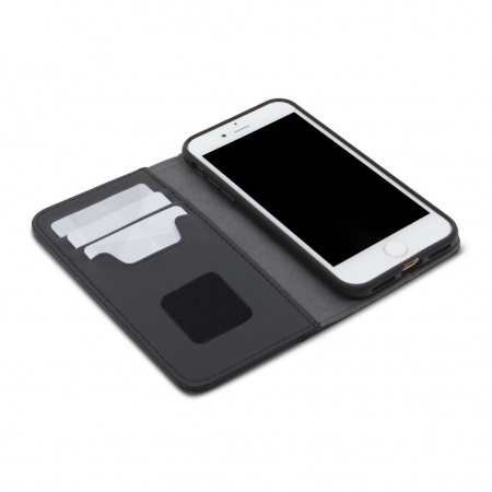 Moshi Overture Flip Wallet Case - кожен/текстилен калъф, тип портфейл и поставка за iPhone 8, iPhone 7 (черен)