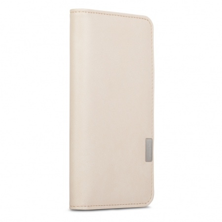 Moshi Overture Flip Wallet Case - кожен/текстилен калъф, тип портфейл и поставка за iPhone 8 Plus, iPhone 7 Plus (бежов)