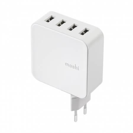 Moshi ProGeo 4-Port USB Wall Charger (35W) - захранване с 4 x USB изхода за мобилни телефони и таблети (бял)