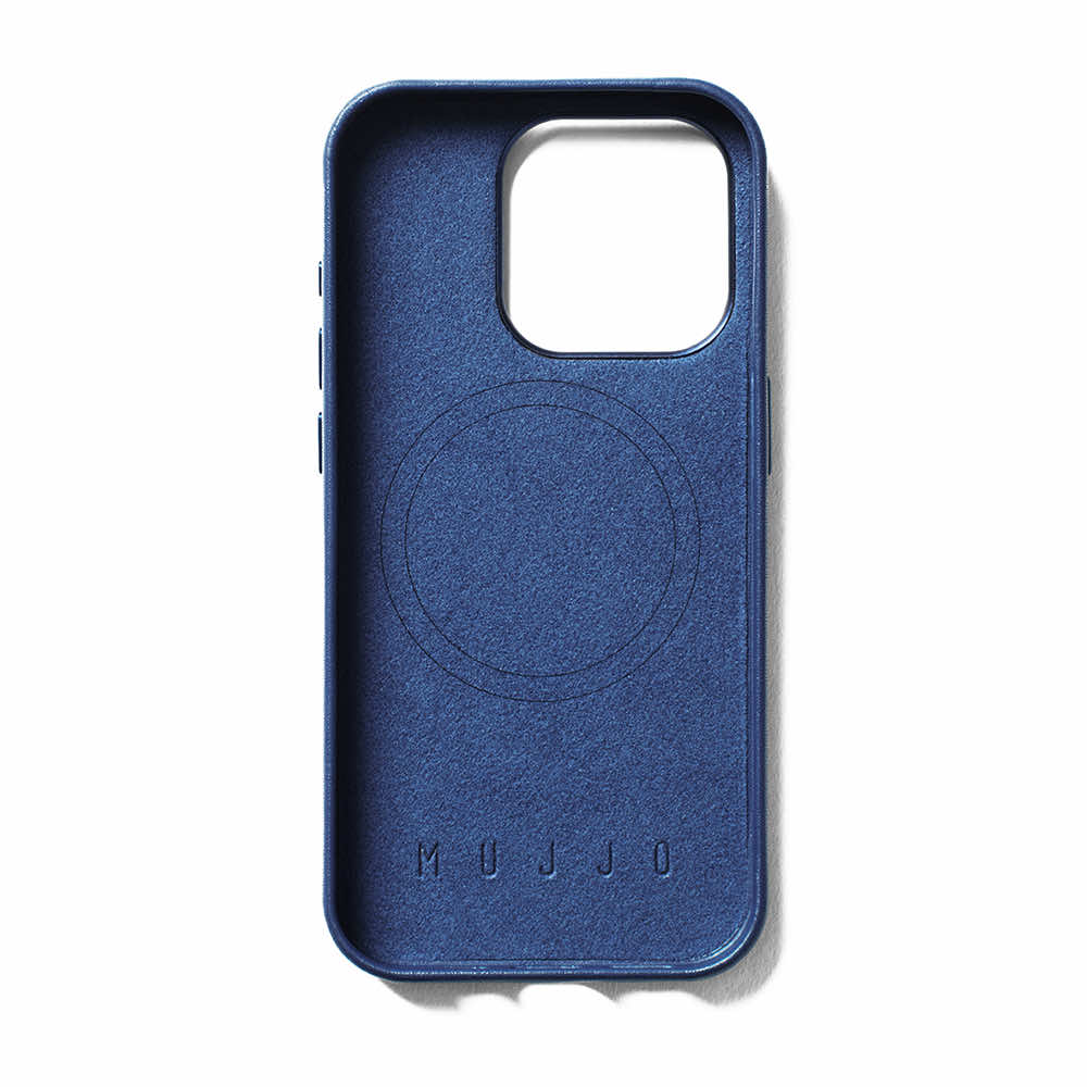 Mujjo Full Leather MagSafe Case - премиум кожен (естествена кожа) кейс с MagSafe за iPhone 15 Pro Max (син)
