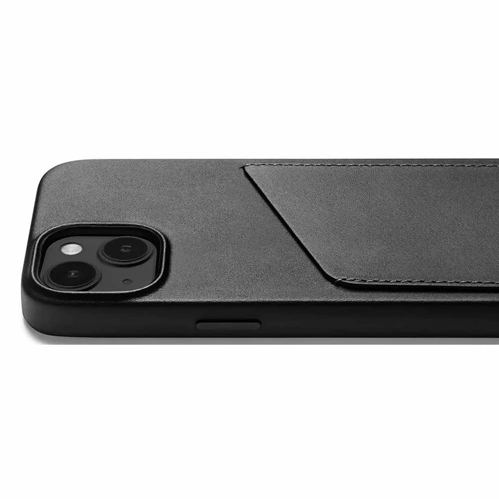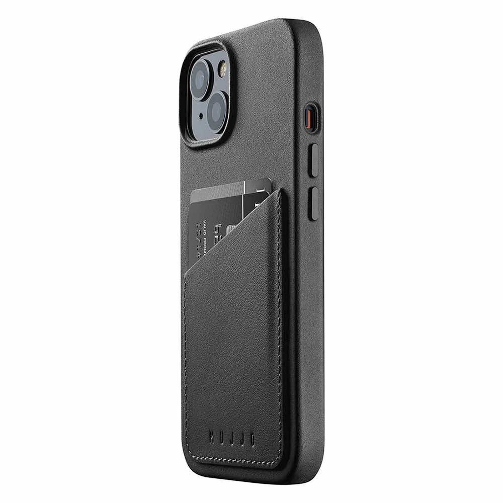 Mujjo Full Leather MagSafe Wallet Case - премиум кожен (естествена кожа) кейс с MagSafe за iPhone 15, iPhone 14, iPhone 13 (черен)