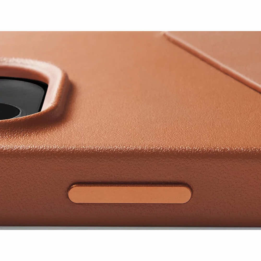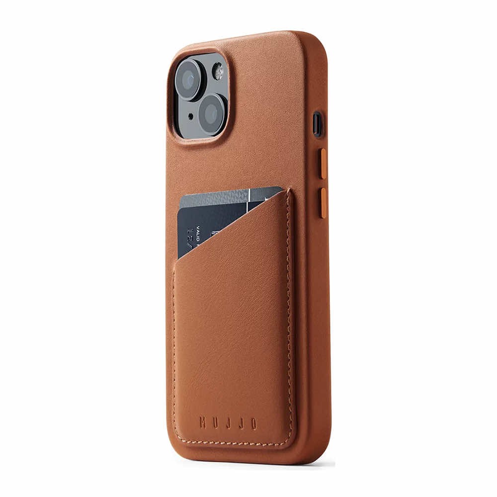 Mujjo Full Leather MagSafe Wallet Case - премиум кожен (естествена кожа) кейс с MagSafe за iPhone 15, iPhone 14, iPhone 13 (кафяв)