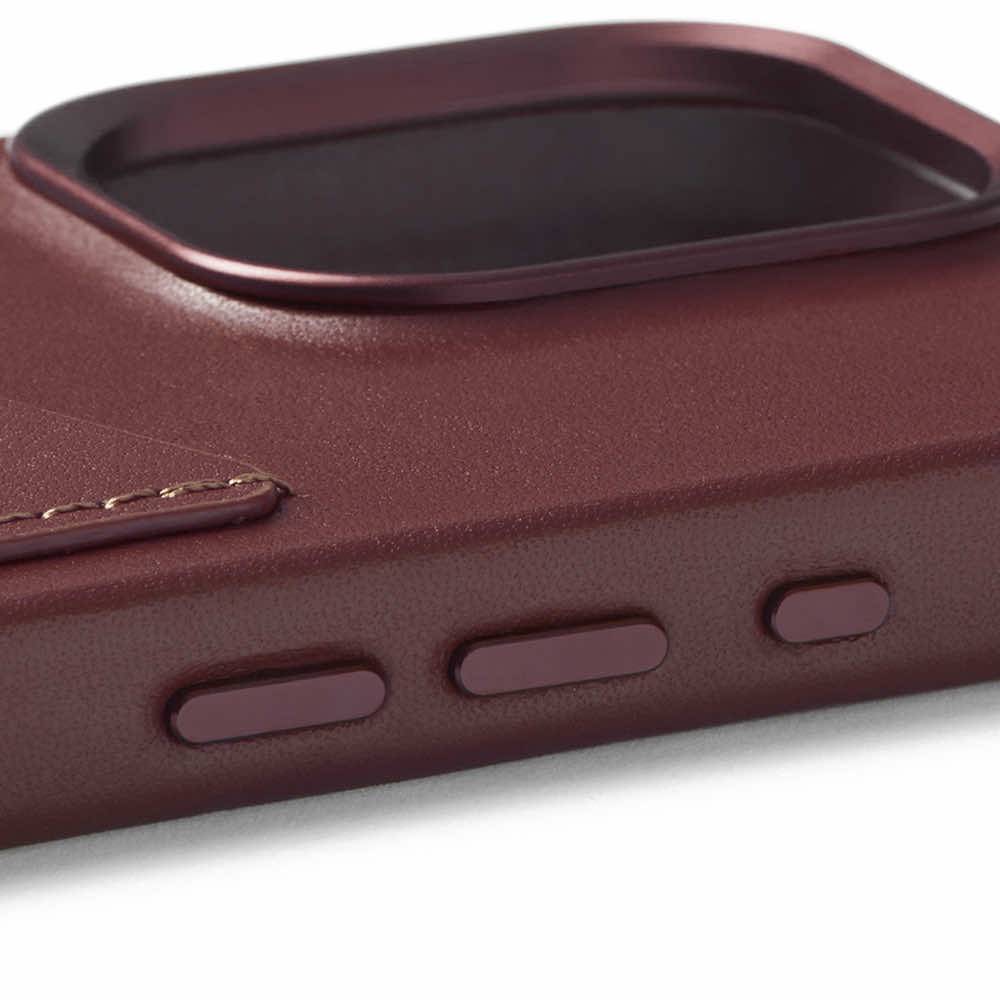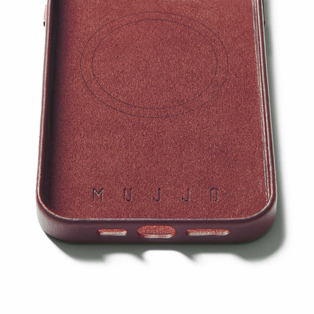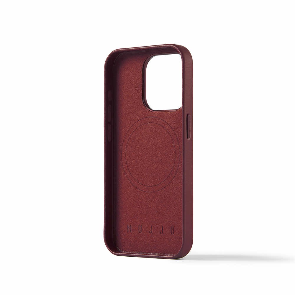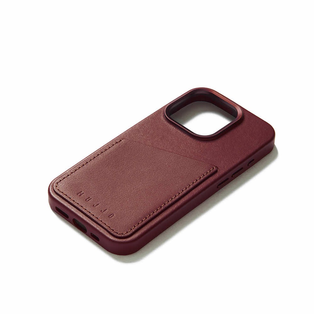 Mujjo Full Leather MagSafe Wallet Case - премиум кожен (естествена кожа) кейс с MagSafe за iPhone 15 Pro (червен)