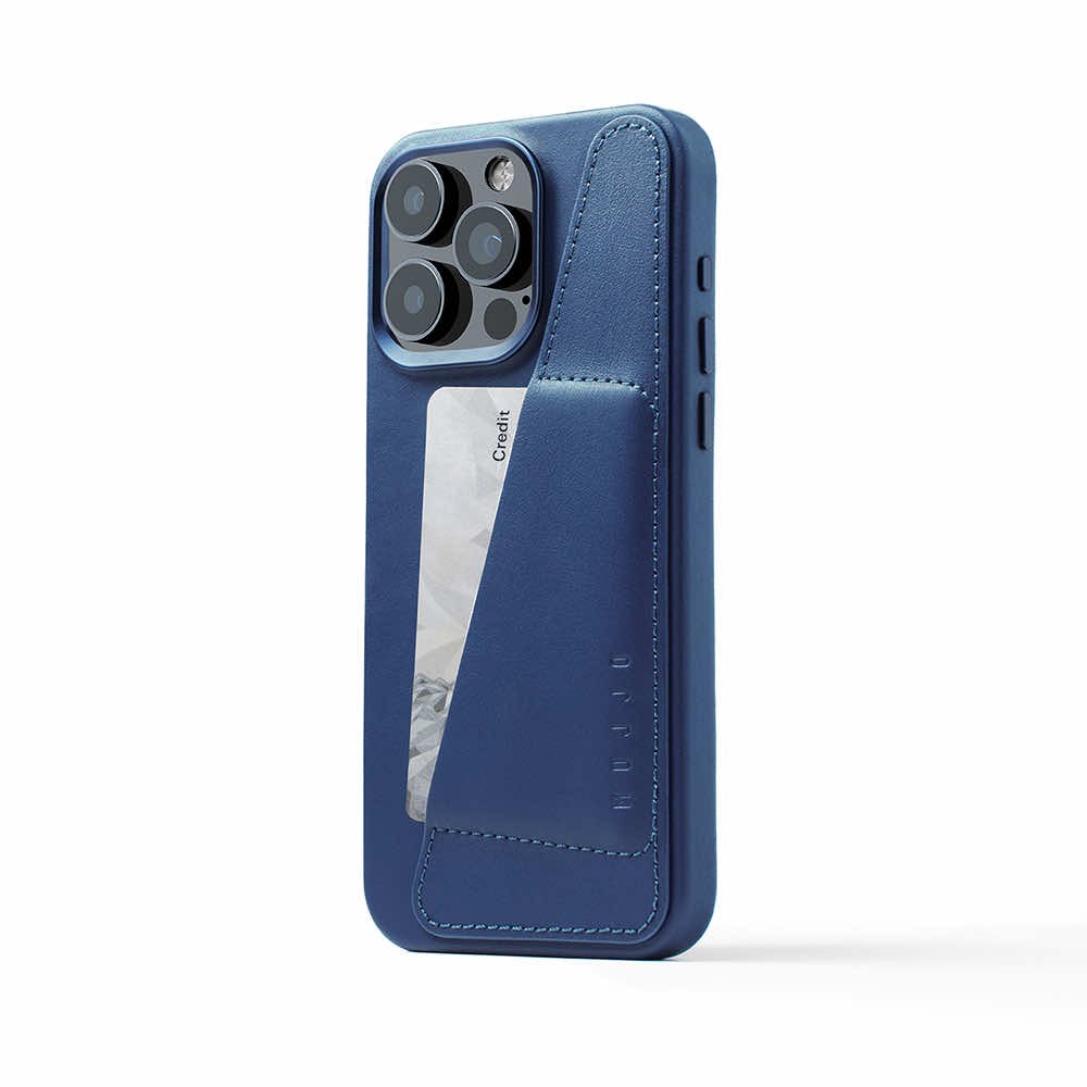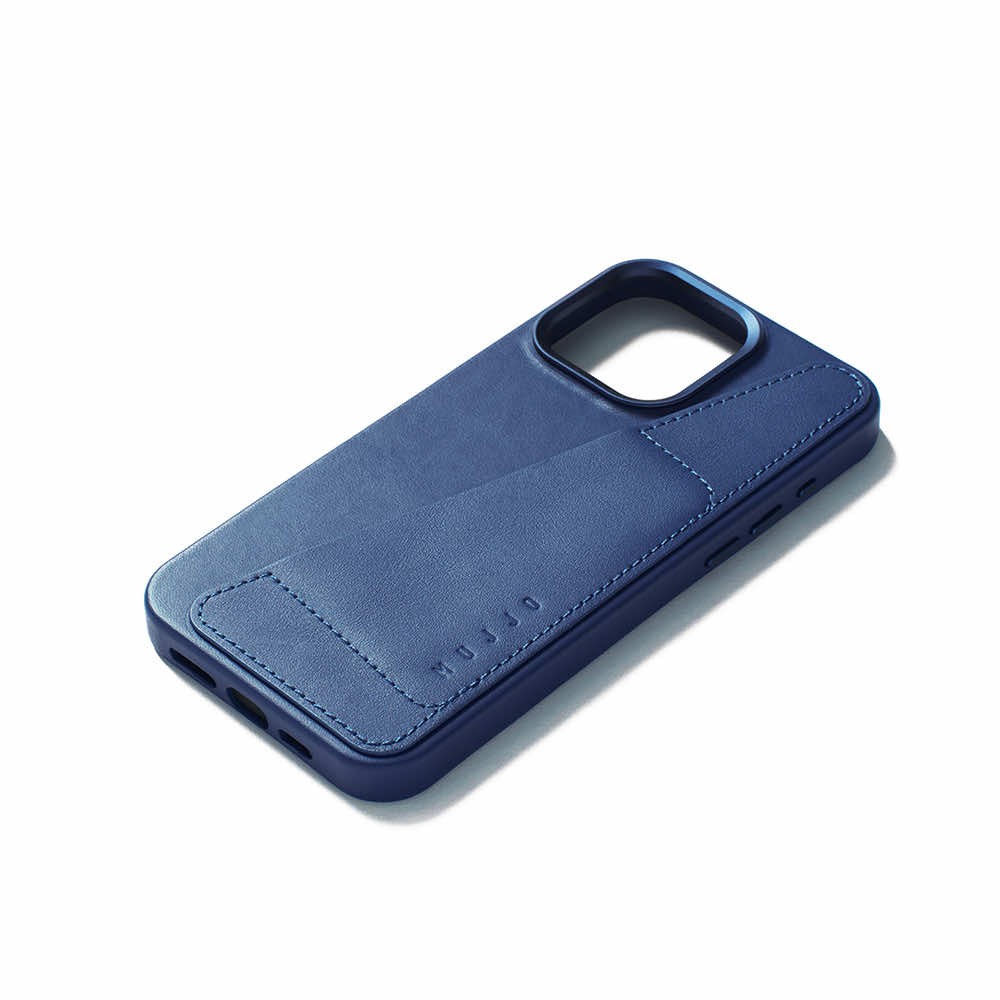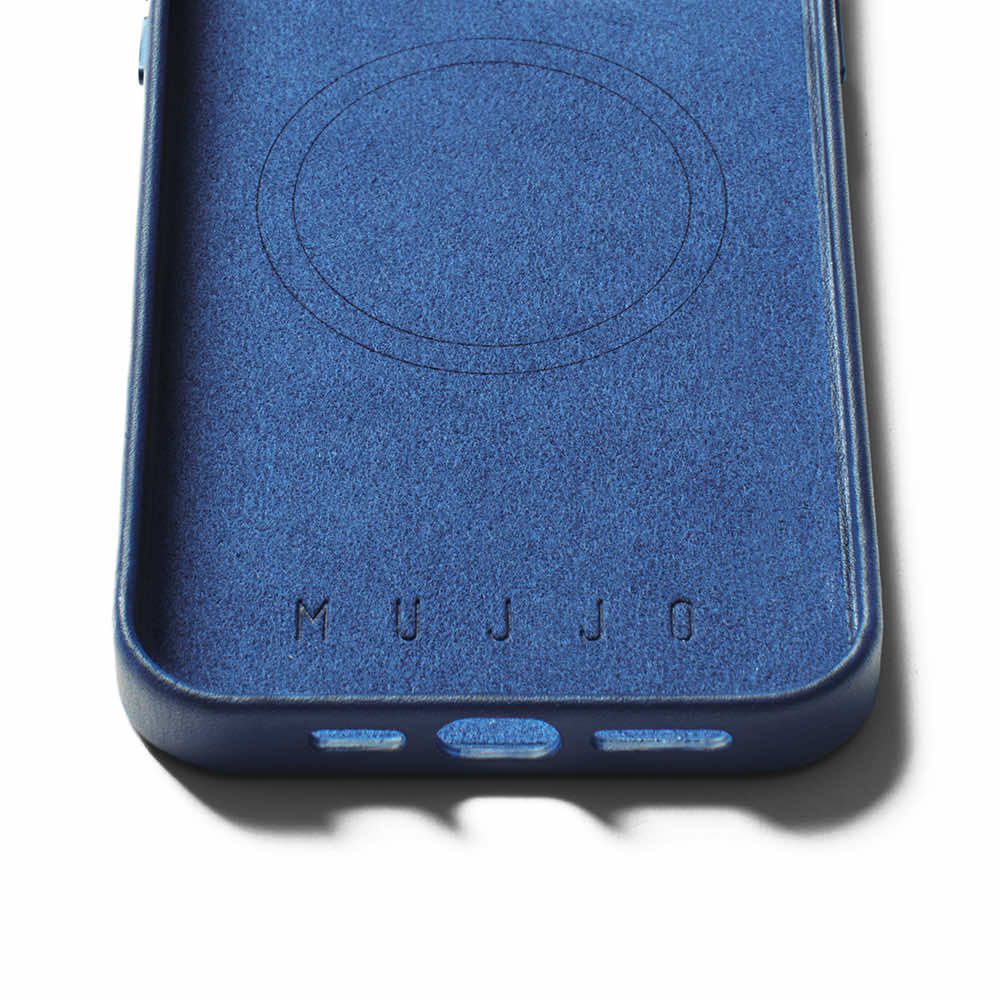 Mujjo Full Leather MagSafe Wallet Case - премиум кожен (естествена кожа) кейс с MagSafe за iPhone 15 Pro Max (син)