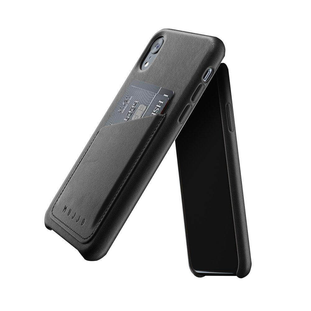 Mujjo Full Leather Wallet Case- кожен (естествена кожа) кейс с джоб за кредитна карта за iPhone XR (черен)