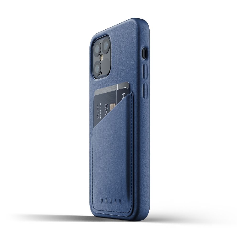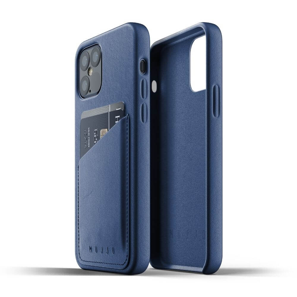 Mujjo Leather Wallet Case - кожен (естествена кожа) кейс с джоб за кредитна карта за iPhone 12, iPhone 12 Pro (син)