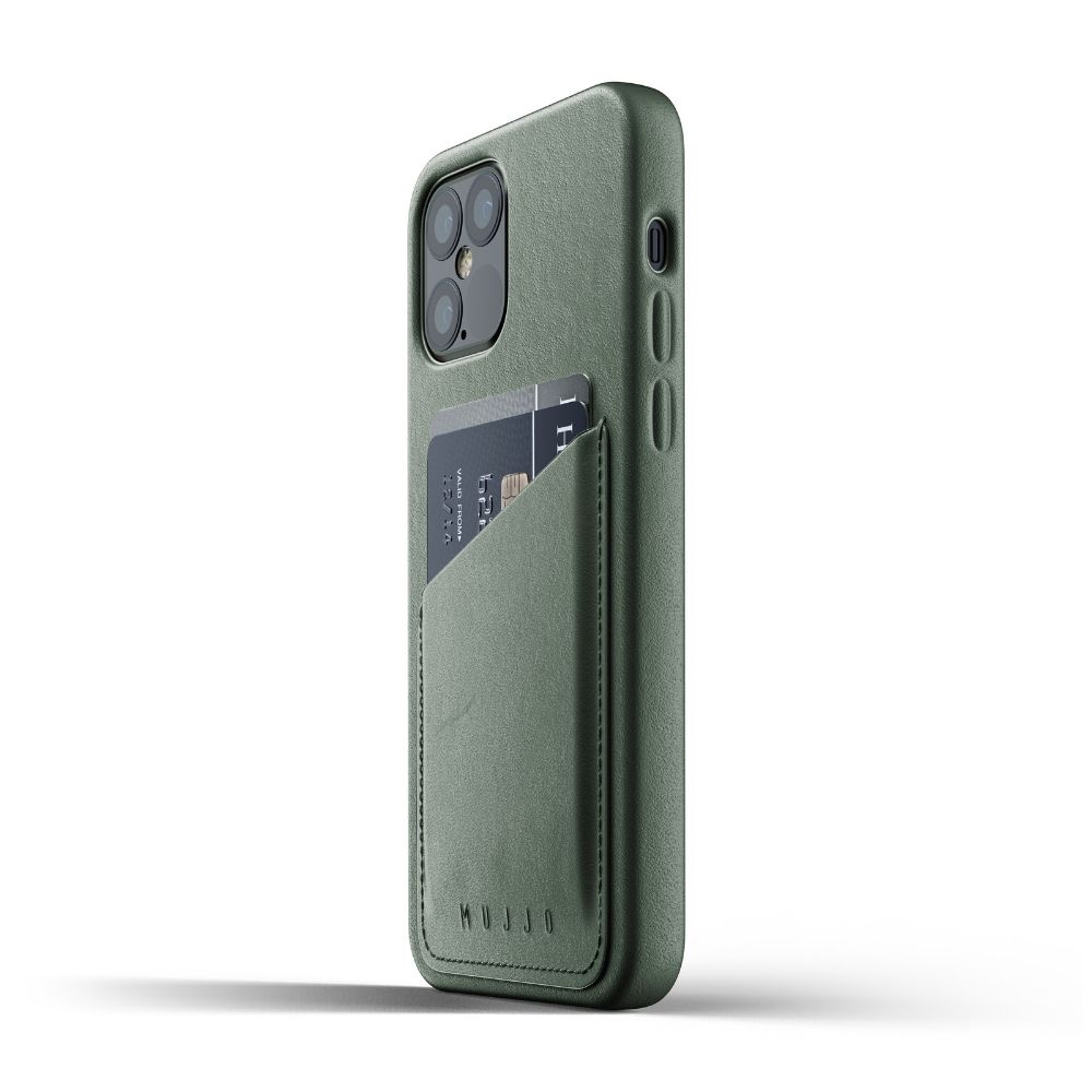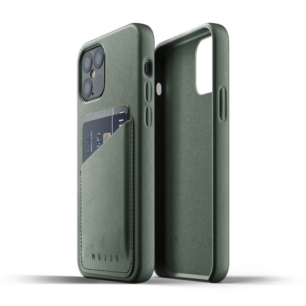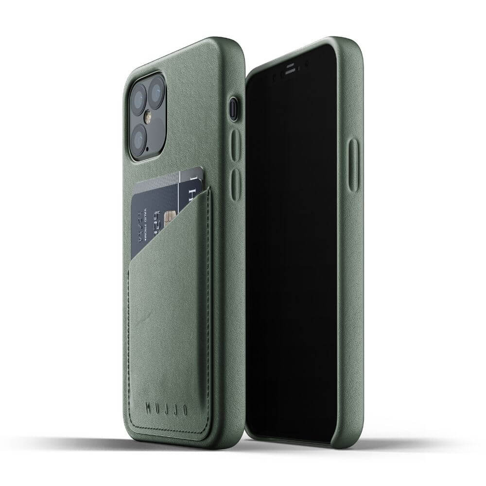Mujjo Leather Wallet Case - кожен (естествена кожа) кейс с джоб за кредитна карта за iPhone 12, iPhone 12 Pro (зелен)