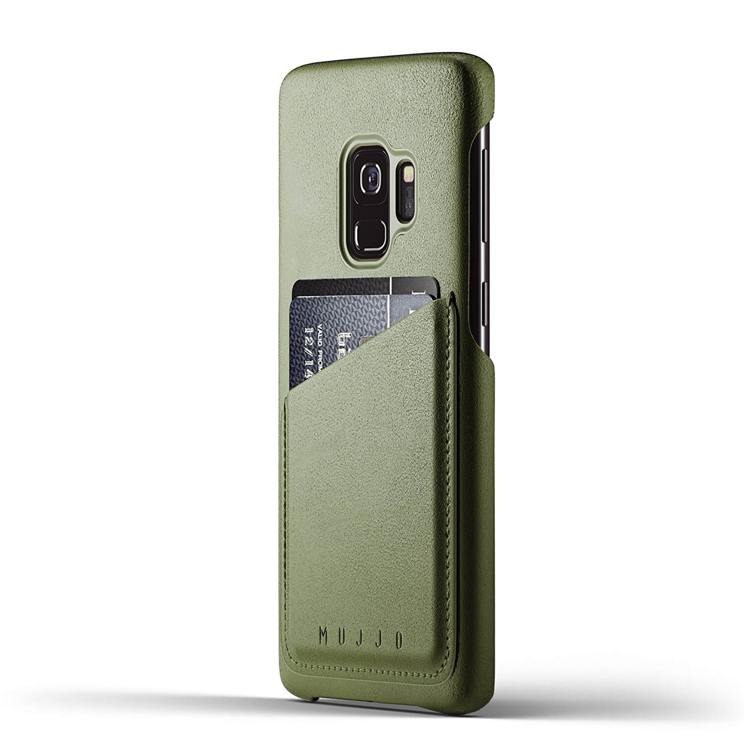 Mujjo Leather Wallet Case - кожен (естествена кожа) кейс с джоб за кредитна карта за Samsung Galaxy S9 (зелен)