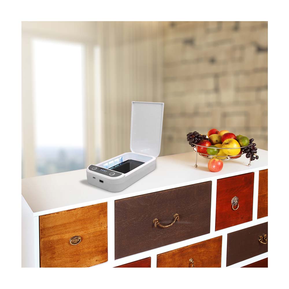 - Стерилизаторът може ефективно да стерилизира вашия смартфон и да премахне нежеланите микроби, бактерии и вируси чрез стерилизация с UV радиация