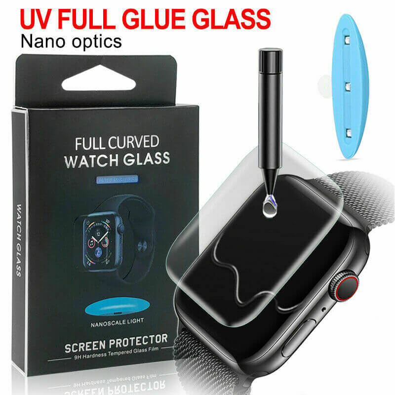 Nano Liquid UV Full Glue Tempered Glass - стъклено защитно покритие с течно лепило и UV лампа за целия дисплей на Apple Watch Series 5, 4 (44 mm) (прозрачен)
