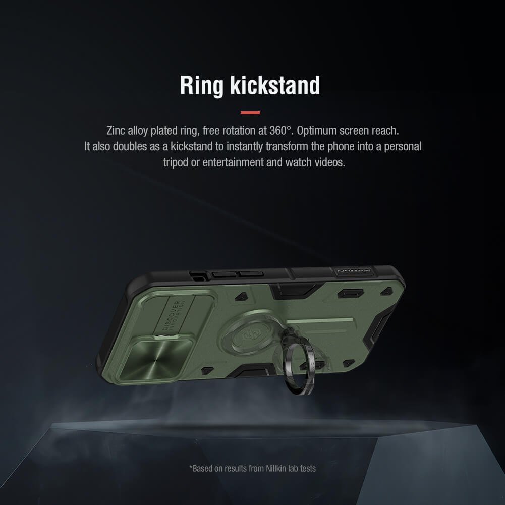 Nillkin CamShield Armor Hard Case - хибриден удароустойчив кейс с пръстен против изпускане за iPhone 13 Pro (зелен)